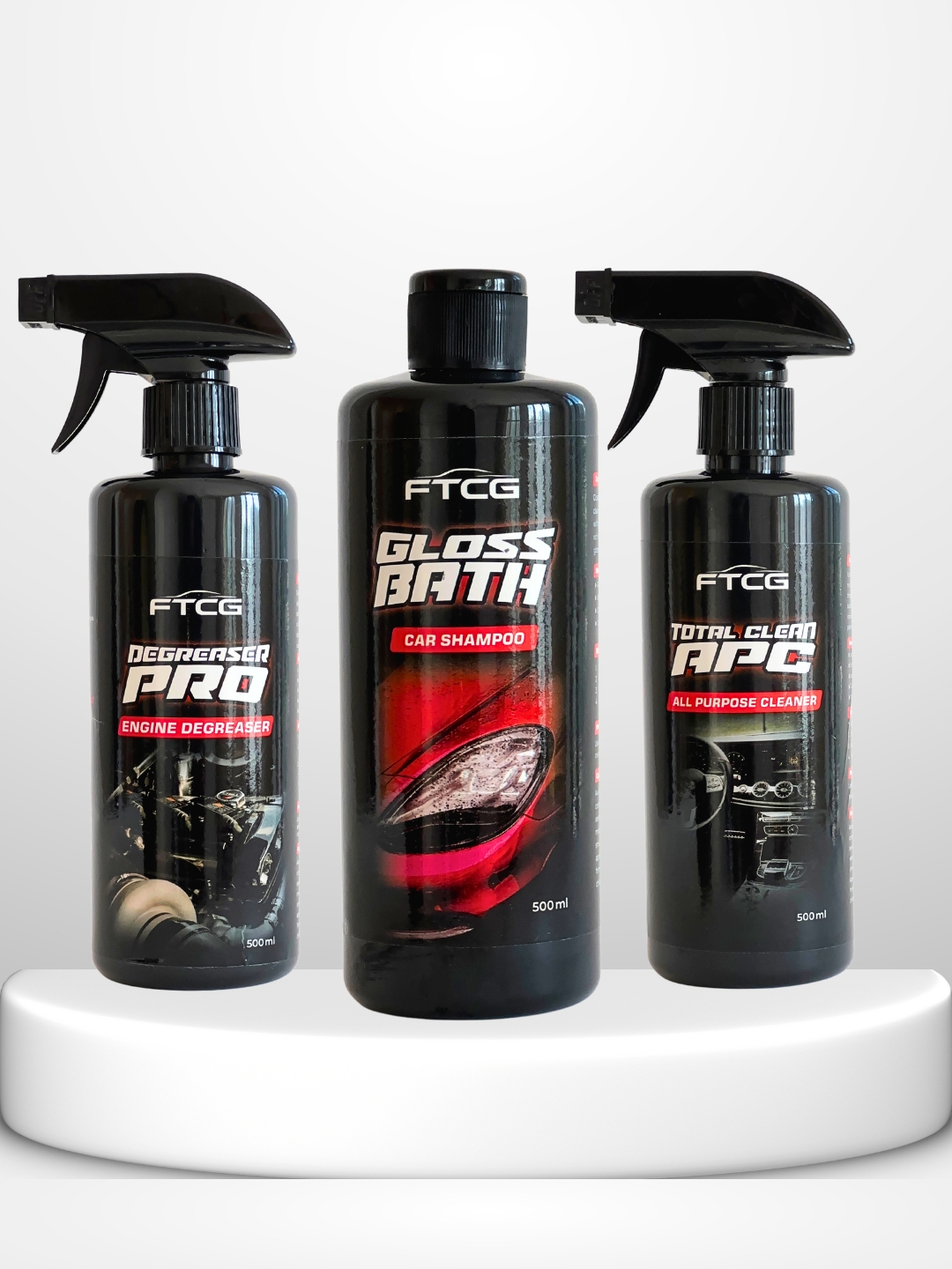 Yes — start with Degreaser Pro for the engine, use Total Clean APC for surfaces, and finish with Gloss Bath for a sparkling finish.